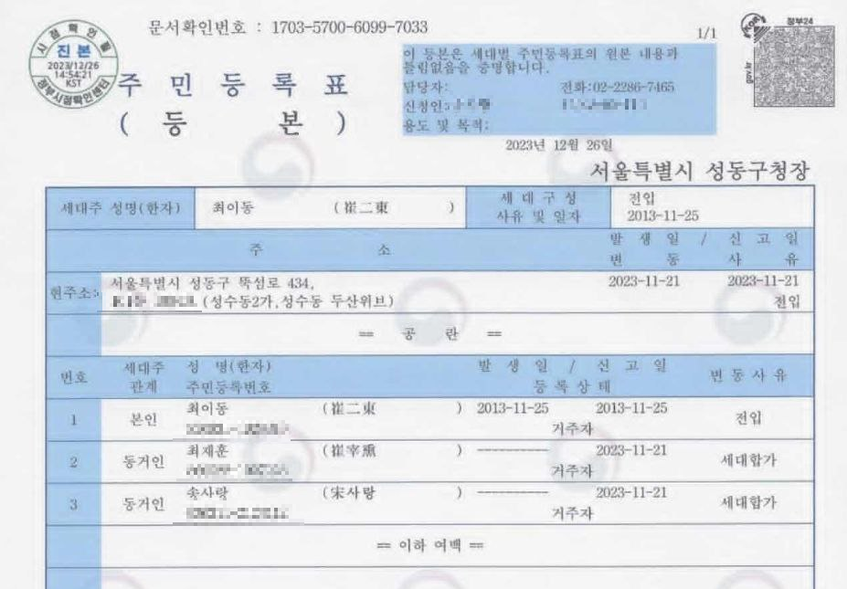 이후 최이동이 잠실 시그니엘로로 거주지를 이전한 뒤,
